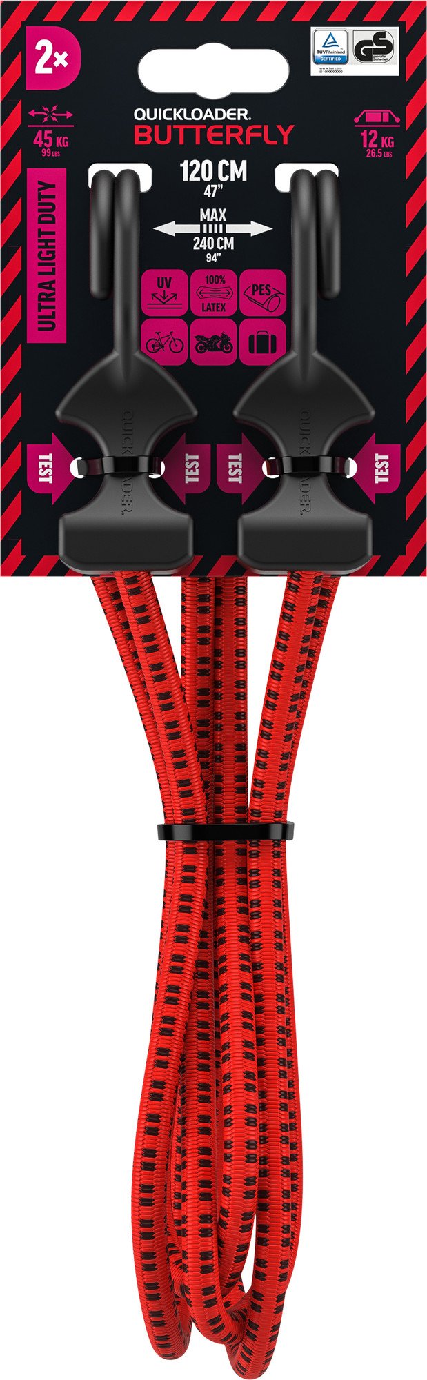 AvalehtE-poodAutokaubadKoormakinnituskumm Quickloader Butterfly Bungee QBF120ULD 120cm x 8mm 45kg 2-PACK