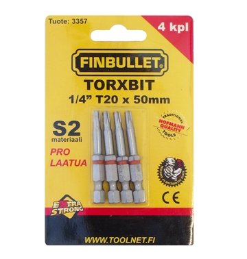 Kruviotsik T20 x 50mm 1/4" 4tk/pakendis