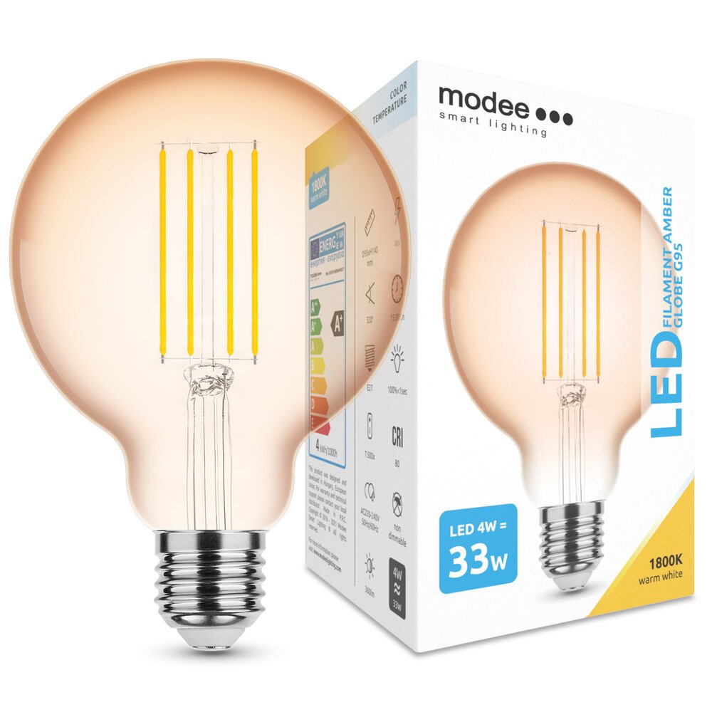AvalehtE-poodElektrikaubadLED-lamp Filament Amber Globe G95 4W E27 320° 1800K (360 lumen)*