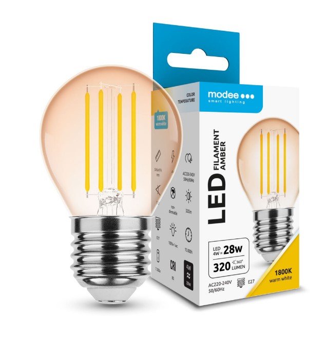 LED-lamp Filament Amber Globe Mini G45 4W E27 320° 1800K (360 lumen)
