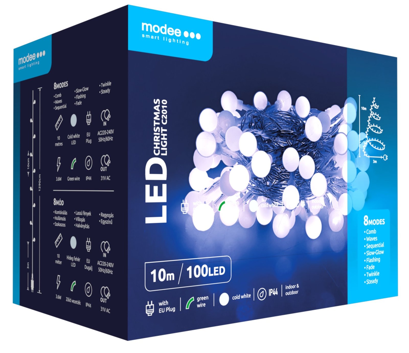 LED-valguskett Modee C2010 Bubble 100LED/10m, 3,6W, 6000K, 230V, pallid