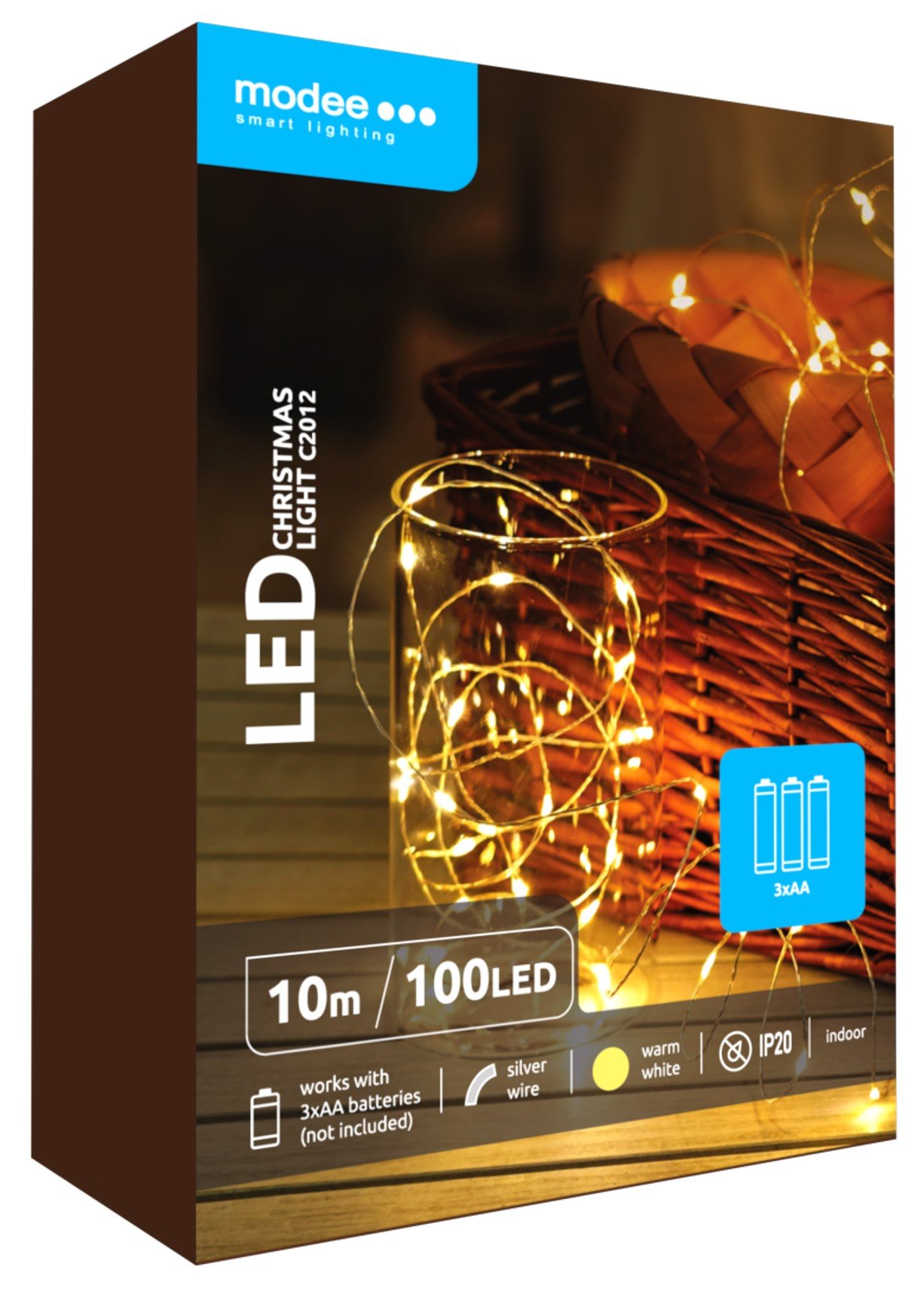 LED-valguskett Modee C2012 100LED/10m, 1,35W, 2700K, 3xAA