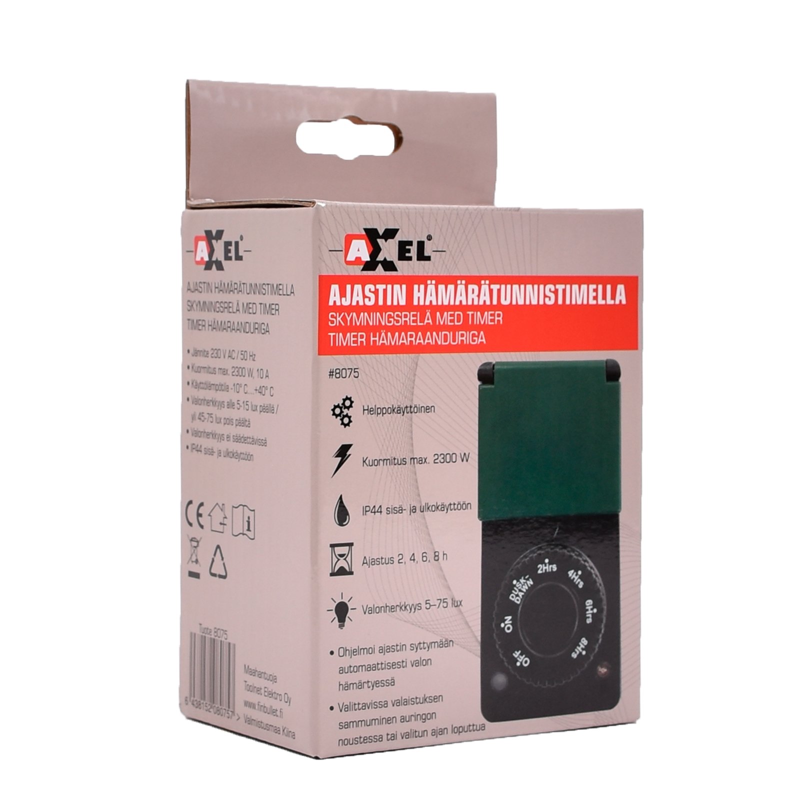 Taimer koos hämaraanduriga. Õues ja siseruumides kasutamiseks mõeldud taimer, mille saab programmeerida automaatselt sisse lülituma, kui valgus hämardub. Valgustus on võimalik välja lülitada, kui õues läheb valgeks või pärast taimeril valitud aja möödumist.
