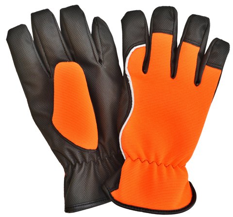 Talvised töö- või vabaaja sõrmikud. Kinda käeselg vastupidavast materjalist (spandex), neoonoranž. PU-pindega niiskust hülgav kämmal. Helkurribad, fliisvooder. Suurus 10.