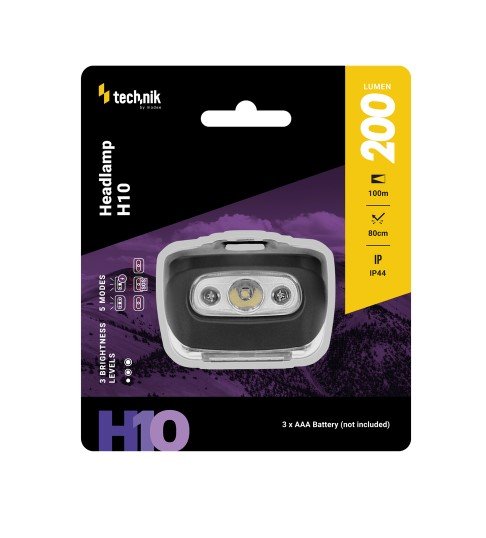 LED-pealamp Technik H10, 200lm, IP44, punase valgusega, 3xAAA
