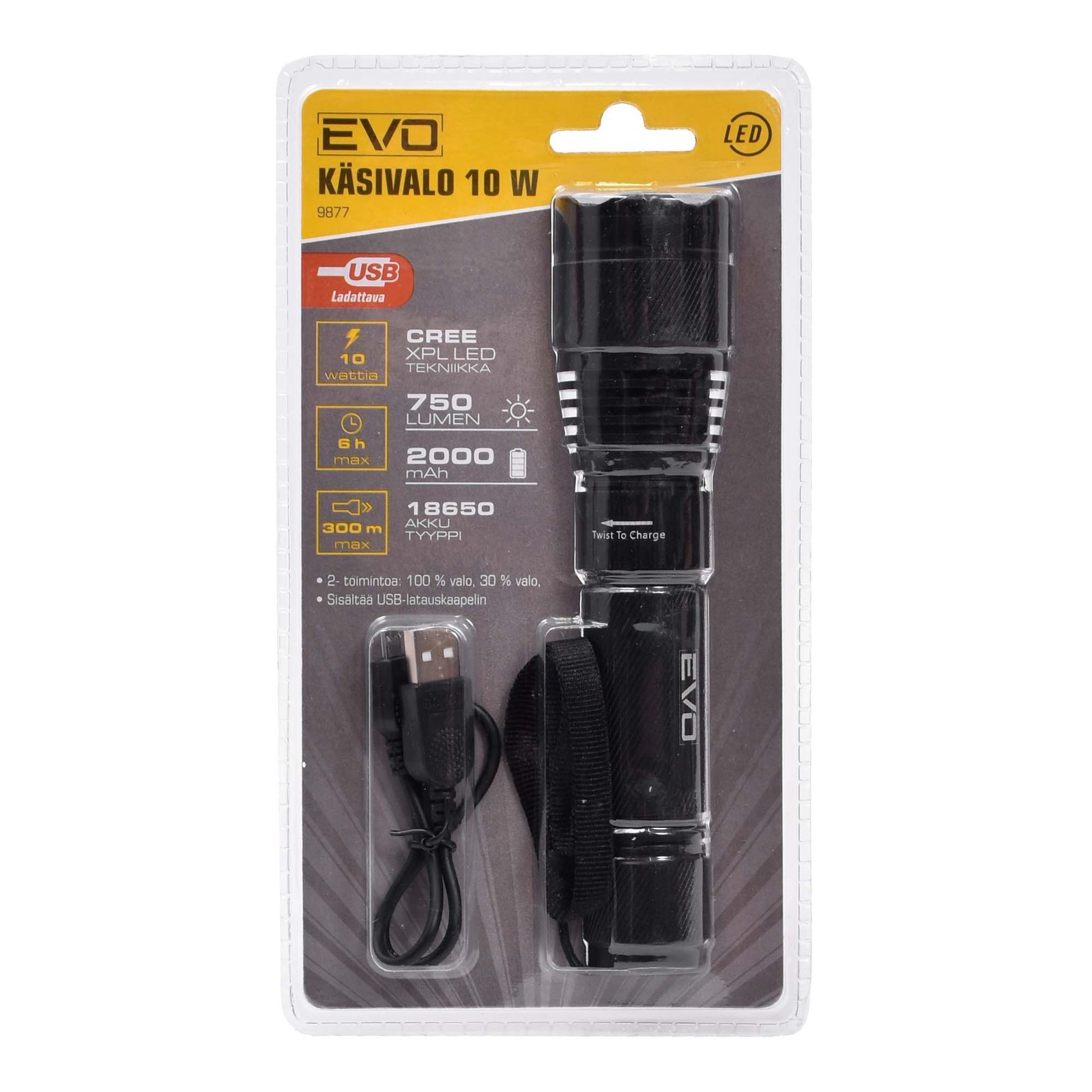 Komplektis: taskulamp, aku, USB-laadimiskaabel.