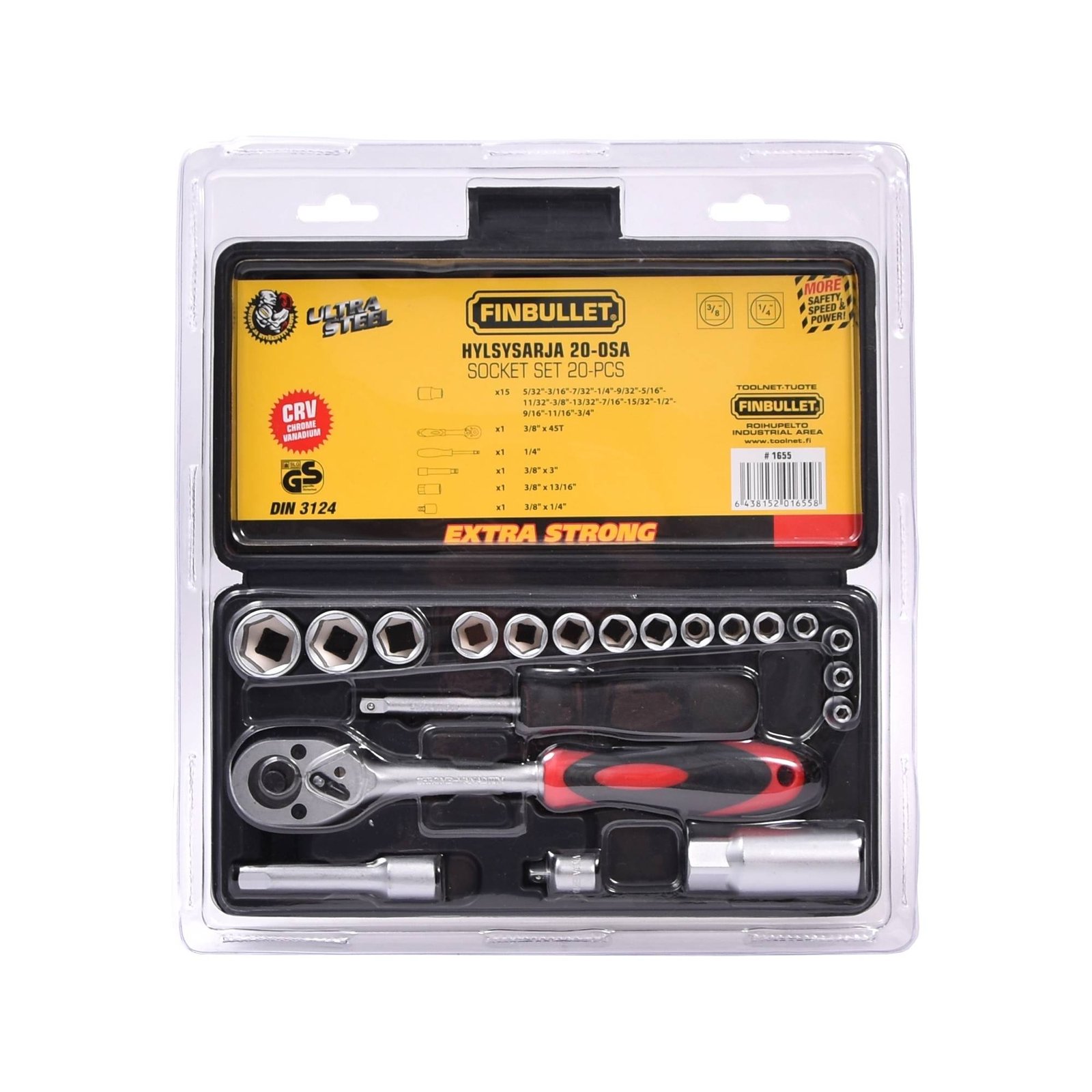 Padrunvõtmete komplekt 20-osa 3/8" tollimõõdus