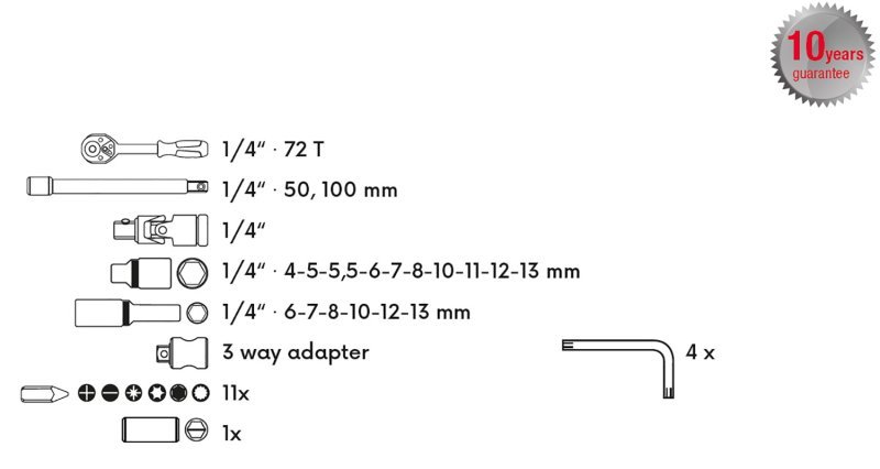 Padrunvõtmete komplekt FESTA 1/4" 36-osaline