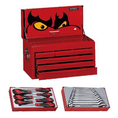 Komplektis on 19 tööriista ja tööriistakast. TC820SV on punasest terasplekist ja sellel on kuus sahtlit ning ülakast. Lukustatav kaas/esikülg, mis katab sahtlid.