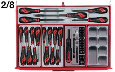 546-osaline täielik tööriistakomplekt. Tarnitakse tööriistakärus TCW808N. Kärul on 8 kuullaagritel sahtlit.