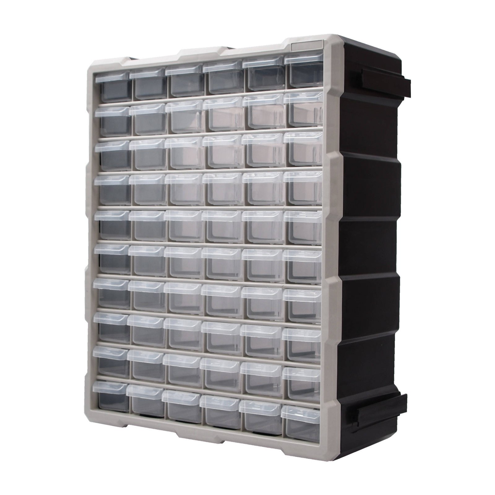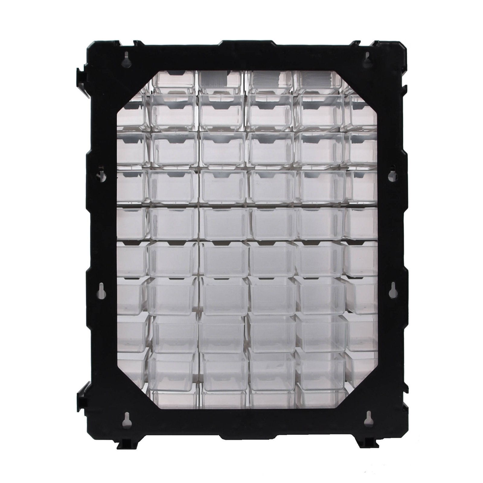 Plastsahtlitega riiul on ideaalne lahendus väiketarvikute ladustamiseks ja grupeerimiseks. Riiulis on 60 plastsahtlit mõõtudega 11 x 5cm. Riiuli võid hõlpsasti kinnitada kas seinale või asetada lihtsalt tasapinnale.
