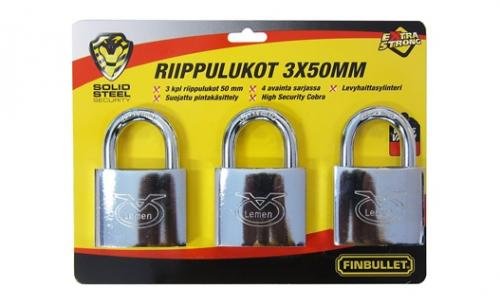 Tabalukkude komplekt 50mm 3tk/pakendis, ühe võtmega avatavad