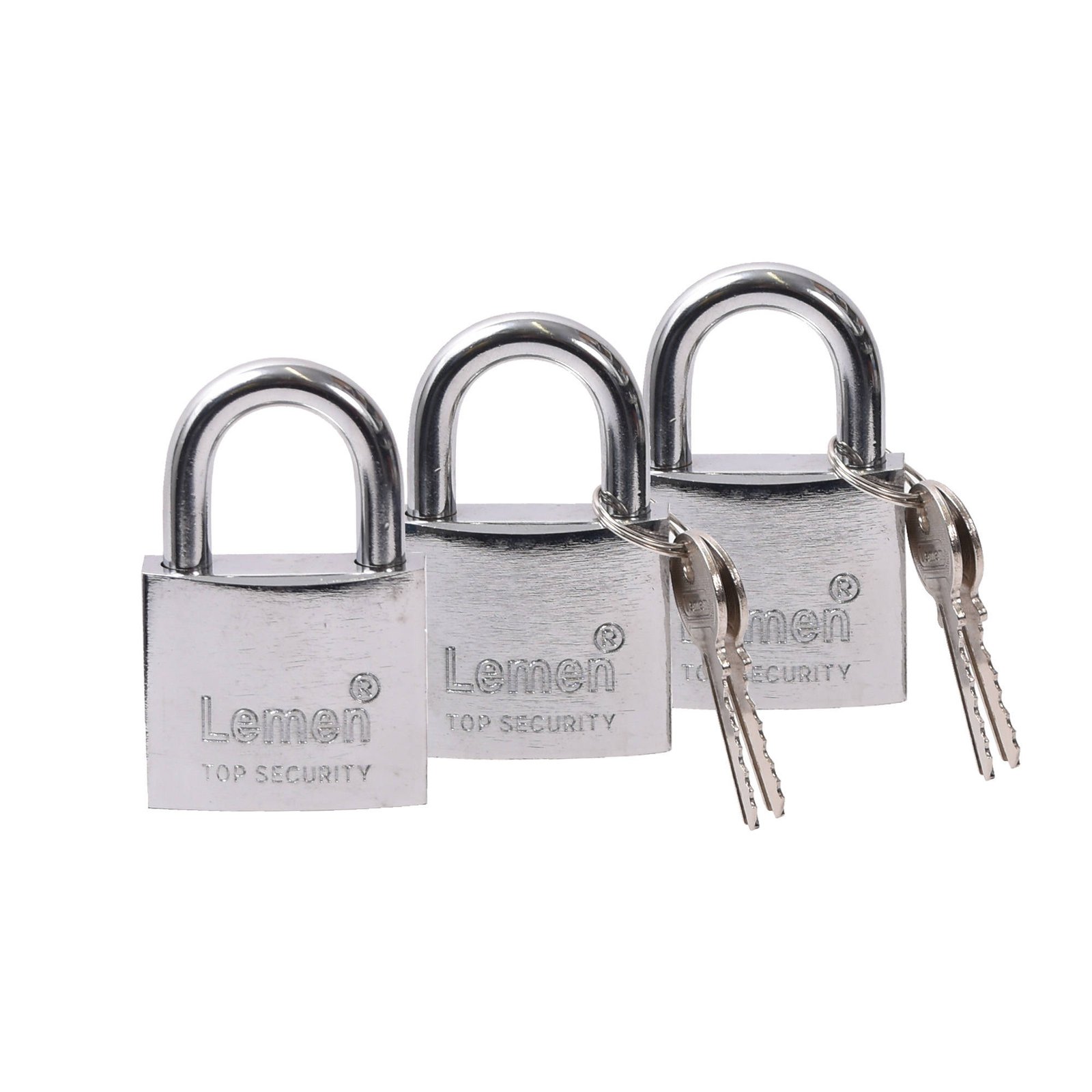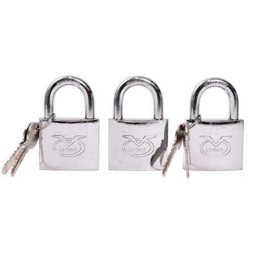 Komplektis 3 tabalukku. Tabalukud on avatavad sama võtmega. Komplektis on 4 võtit, mis kõik avavad komplektis olevad 3 tabalukku.
