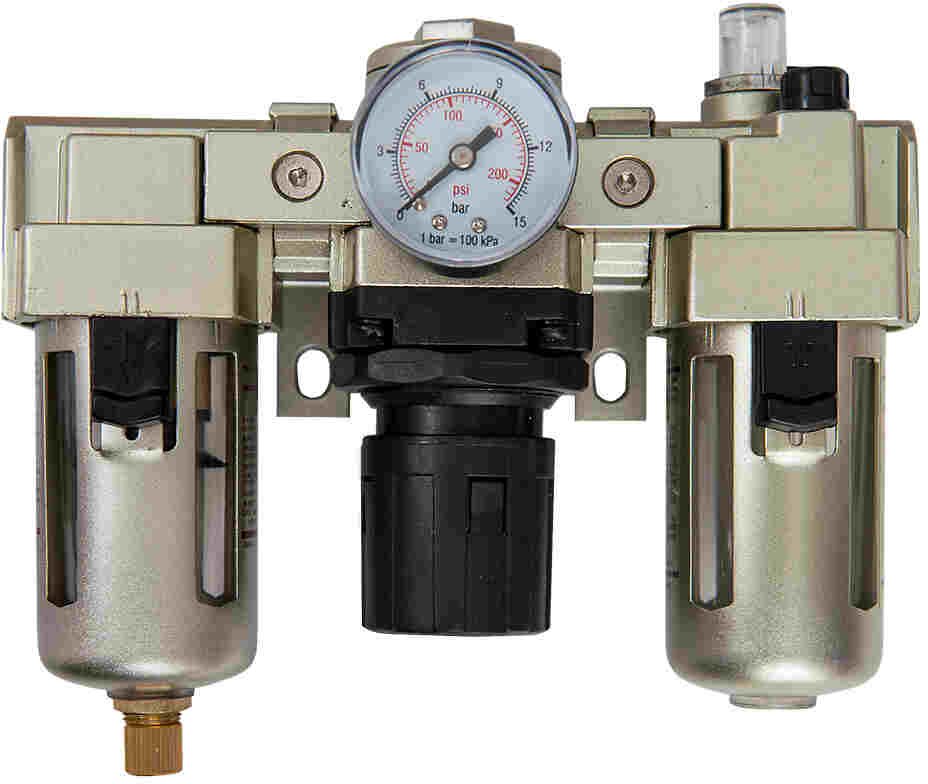 Ökonoomne ja koheselt kasutamiseks valmis lahendus õhutrassist niiskuse eemaldamiseks, õhusurve reguleerimiseks ja tööriistade õlitamiseks. 1/4” sisendiga, poolautomaatse tühjendusklapiga, maksimaalselt 10 bar´isele õhusurvele, Seinakinnituse ja manomeeteriga.