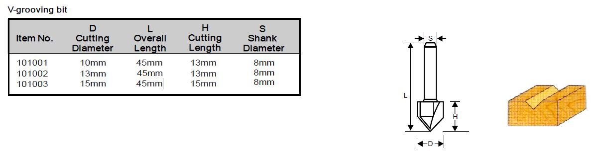V-soonega, 2 teraga. Tera läbimõõt 13 mm, kogupikkus 45 mm, lõikepikkus 13 mm. Kinnitustsang 8 mm.