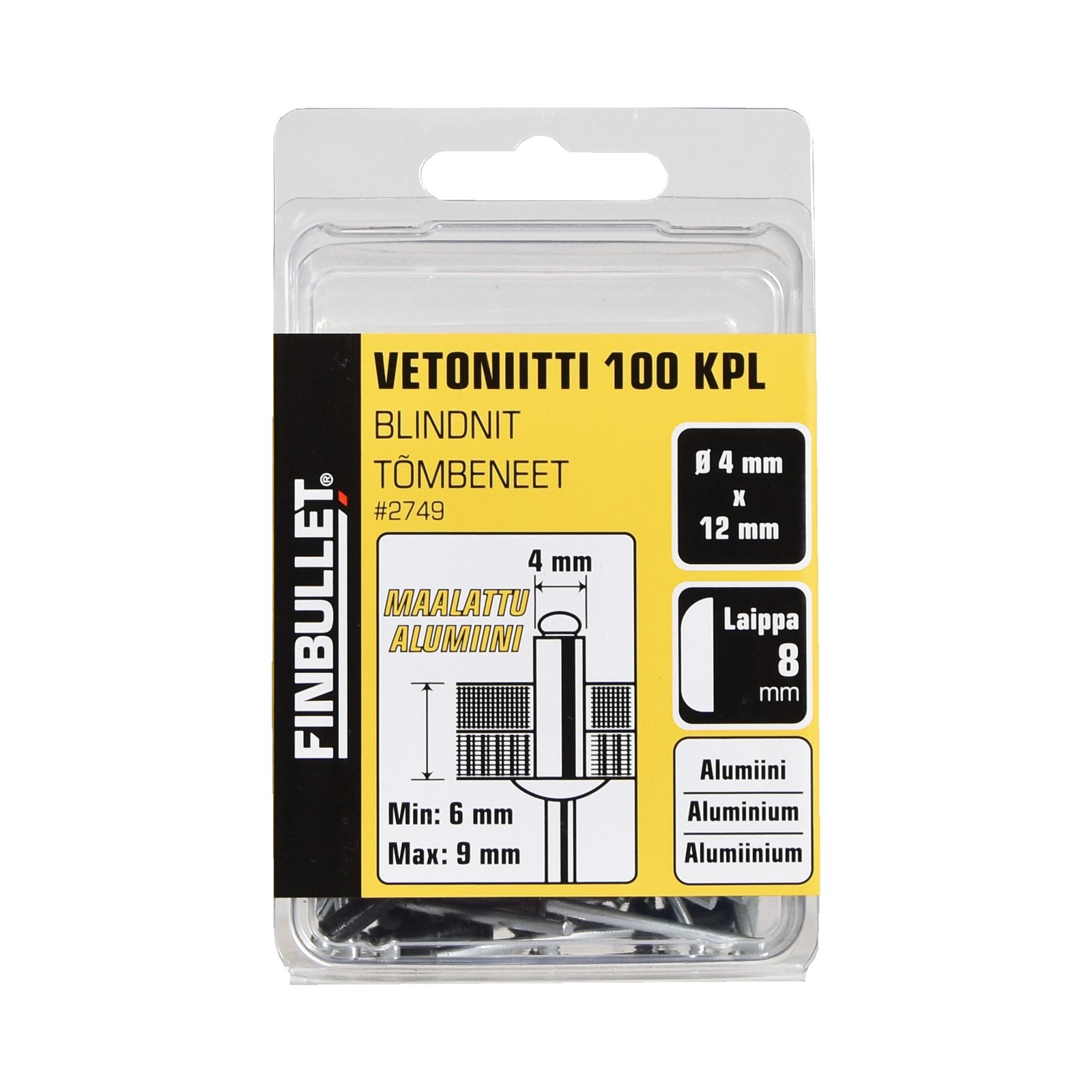 Neet 4,0X12 Alumiinium MUST 100 tk