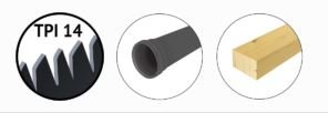 Kõikide puiduliikide, vineeri, puitlaastplaatide, pehme plastiku lõikamiseks.