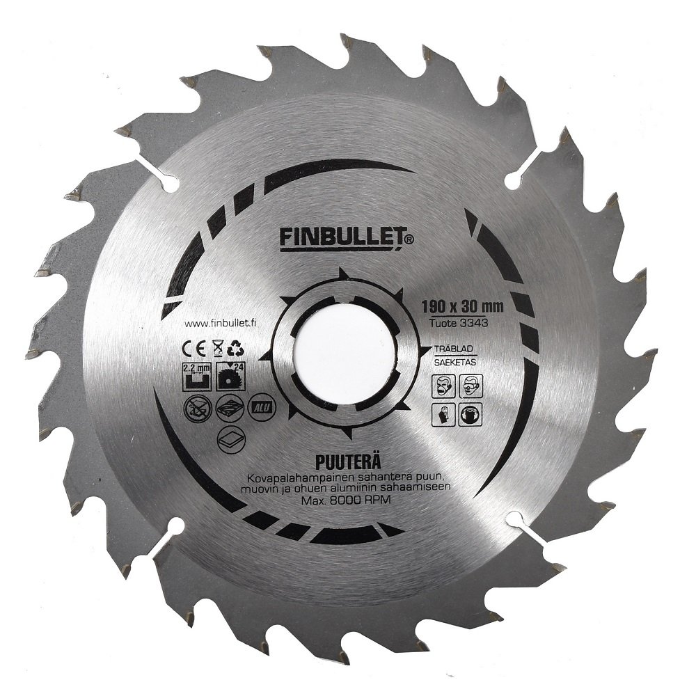 Saeketas läbimõõduga 190 mm, keskava 30 mm, hammaste arv 24. Üldkasutatav saeketas ehituspuidule, erinevatele puitkiudplaatidele ning vineerile. Komplektis 16 ja 20mm seib.